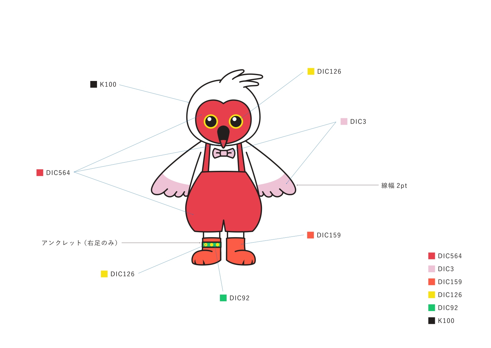 トキ次郎の各部の色指定お飛び基本図をです、jpgファイルですドロップしての使用が可能です